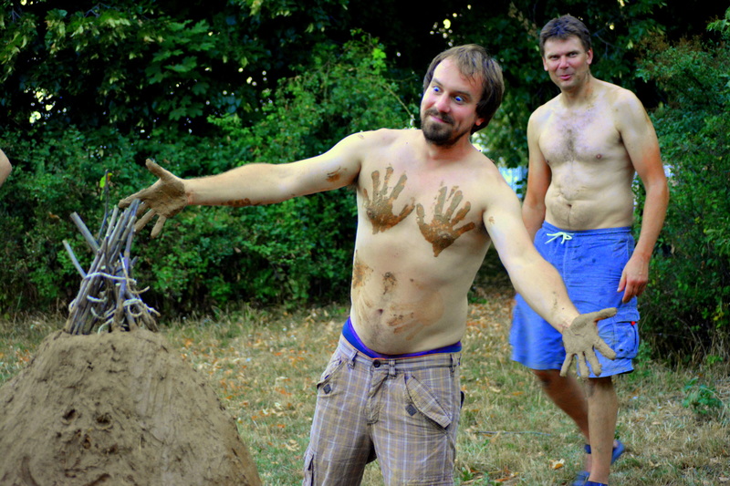 Ve středu 22.7. se nám navzdory až přílišné přízni počasí podařilo postavit hliněnou roštovou pec na keramiku a nedostat úpal. Kolem 30 dětí si v keramické dílně vyrobilo mističky k vypálení. Ve stejném množství, ale převážně dospělí, jsme se sešli i kolem stavby pece. Pustili jsme se do práce se zaujetím jeskynního člověka a touhou přivést na svět repliku pícky, v jaké mohla kdysi vzniknout věstonická Venuše. Základy spatřily světlo světa už v první hodině práce a vyznamenání pro nejstatečnějšího šlapače hlíny v dětské kategorii si odnesl Adam Čermák. Prošlapávat jílovitou hlínu s vodou a slámou nebylo zrovna nejjednodušší a odvážlivci se ke kalfasům moc nehrnuli.